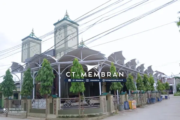 Kanopi membran kini menjadi salah satu pilihan populer untuk melengkapi area masjid, baik di bagian halaman, pintu masuk, maupun area parkir jamaah. Desainnya yang modern, material yang kuat, serta daya tahan tinggi terhadap cuaca menjadikan kanopi membran bukan hanya pelindung, tetapi juga elemen estetika yang memperindah bangunan masjid.